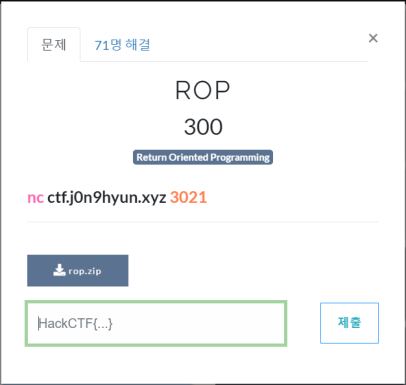 안녕하세요! 오늘은 HackCTF ROP writeup을 써볼겁니다!