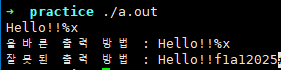 올바르게 포맷스트링으로 형식을 지정해준 구문은 올바르게 출력이 되었지만,