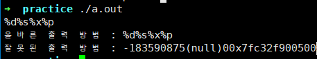 따라서, printf(str)로 출력을 시켜버리면 버그가 발생하여 사용자의 입력값에 따라 메모리의 상태가 유출될 수 있습니다.