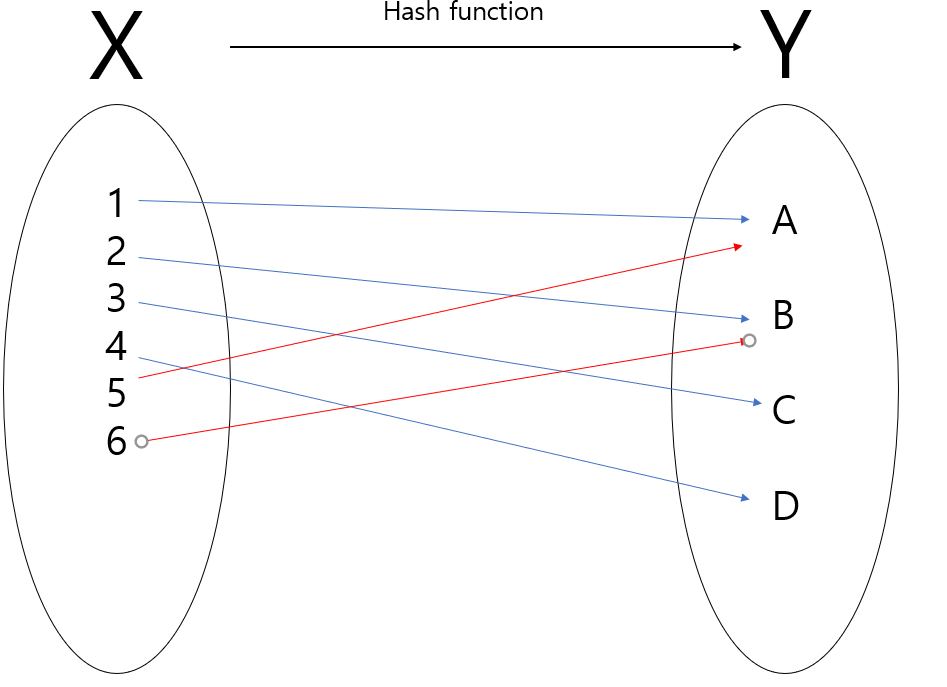 이렇게, 치역이 정의역보다 적으면 어쩔수 없이 충돌이 일어나는 것을 확인할 수 있습니다.