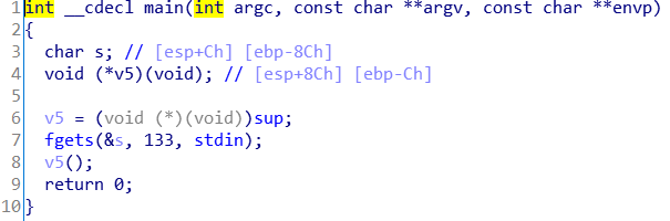 이렇게 v5에 sup이라는 함수의 주소를 넣고,